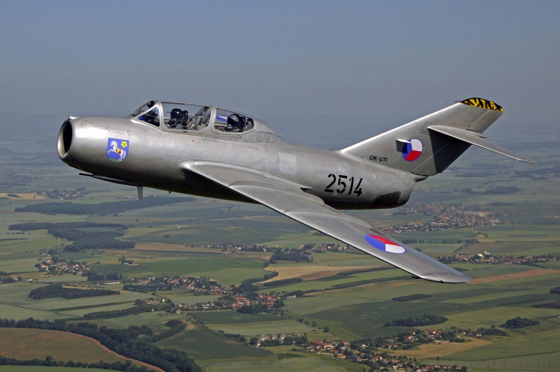 Mig-15UTI (výrobní číslo 242266) je české produkce a pod označením CS-102 byl vyroben v Aeru Vodochody. Jedná se o dvoumístnou cvičnou verzi legendární proudové stihačky s motorem VK-1. Letoun má domovské letiště v Hradci Králové a je ve zbarvení české kamufláže 30. SBOLP “Ostravský” s charakteristickým znakem města Ostravy na přídi letounu. Barevné provedení letounu odpovídá Migu, který na hradeckém letišti létal do roku 1983 s označením 2514.